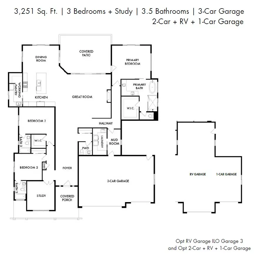 5 Beds4.5 Baths3,139 – 3,281 Sq. Ft.1 Story | 3- to 4-Car + RV Garage
